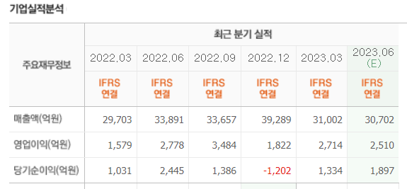 지난 2022년은 영업이익 9662억으로 아쉽게 1조 클럽을 달성하지 못해 올해에 그 기대감이 더 커진 상태인데요, 기업의 실적이 개선되는 것이 주가 상승에 가장 큰 호재가 아닐까요?