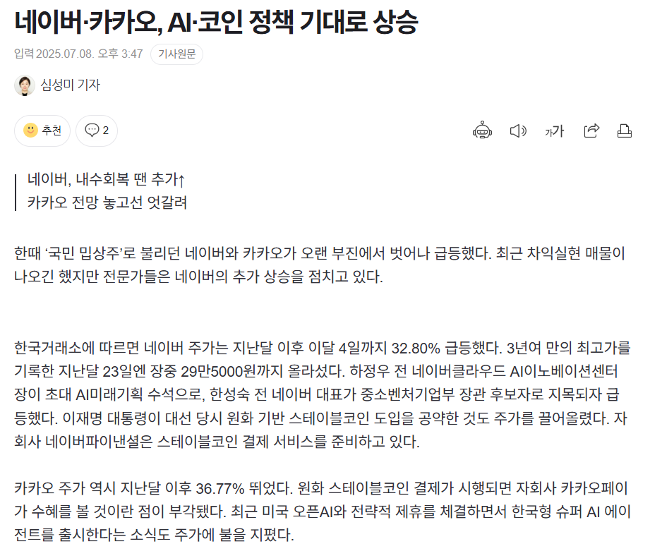특히 6~7월 사이에는 정부 소비쿠폰 정책에 따른 실수요 증가와, 스테이블코인 관련 테마주 편입으로 인해 거래량 급등, 일시적 거래 정지 현상까지 발생하며 주가 변동성이 컸습니다.